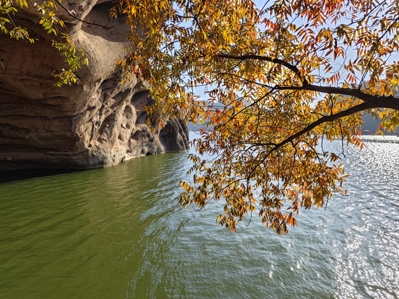 秦岭的秋天,是非常难卡准的,每年因为气候都会有前后的移动导致进山时的景色跟预期存在着差距。在11月末,冬雪未至,群山景色单调之时,选择一处几乎没有野外危险的健康小山,费些力上坡,谨慎点下坡,走在更多的小路和成熟的步道,眼前是山水风光+抖音爆火打卡地燕子洞,是这个季节独一无二的美景,风景相对指数⭐⭐⭐⭐⭐