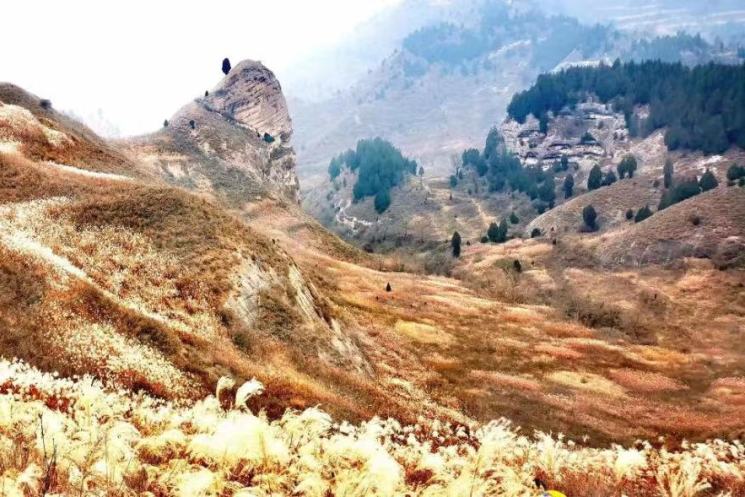 在这初冬刚来之际,要颜色没颜色,要冰雪没冰雪,看似毫无旖旎风光的尴尬期,却是有这样一条风光绝美路线:山水风光+一丢丢红叶,漫山芦苇小穿越。此刻得卒落村,更像是一张山水画卷,在这个其余山峦色彩单调的时刻更衬托它独一无二的美。