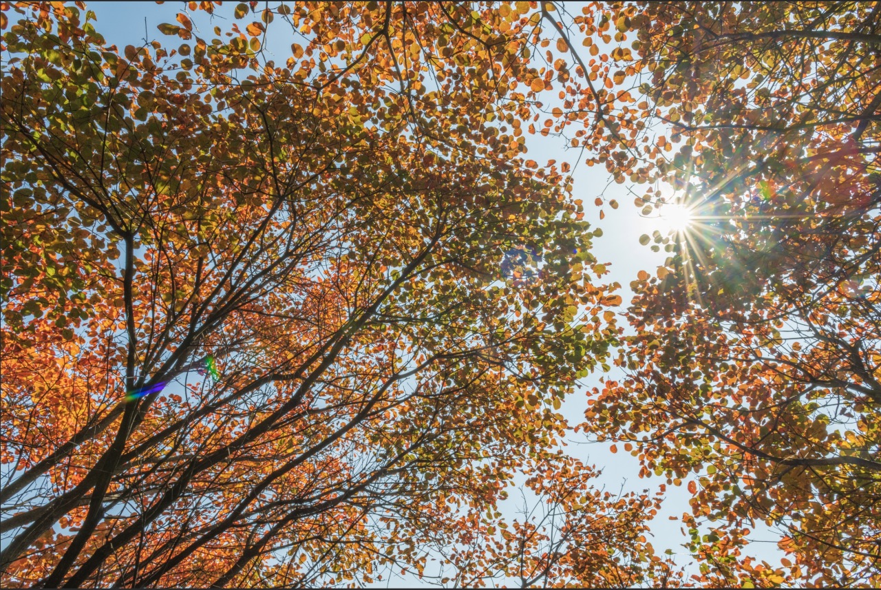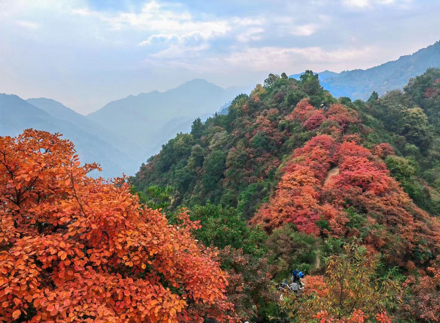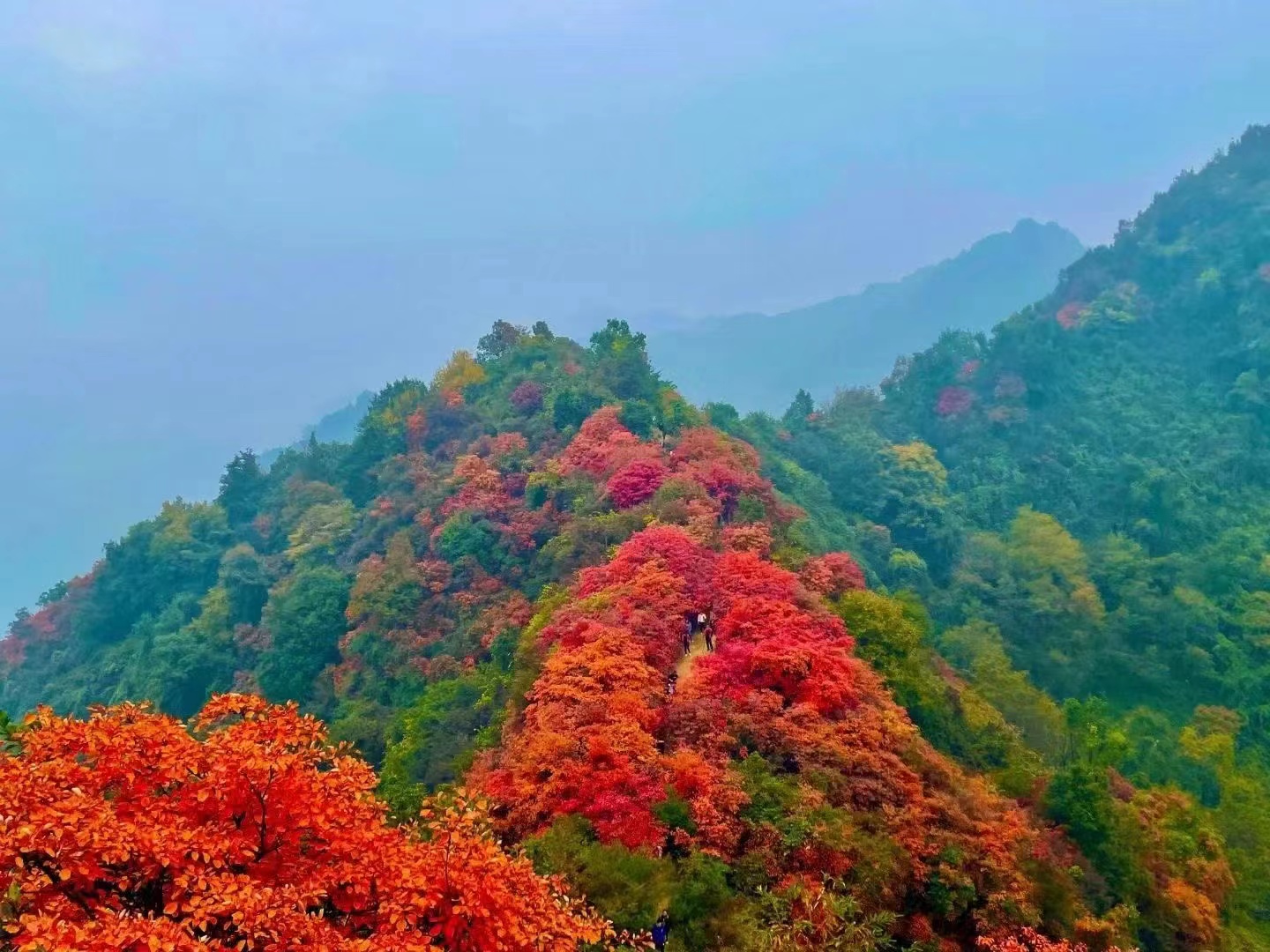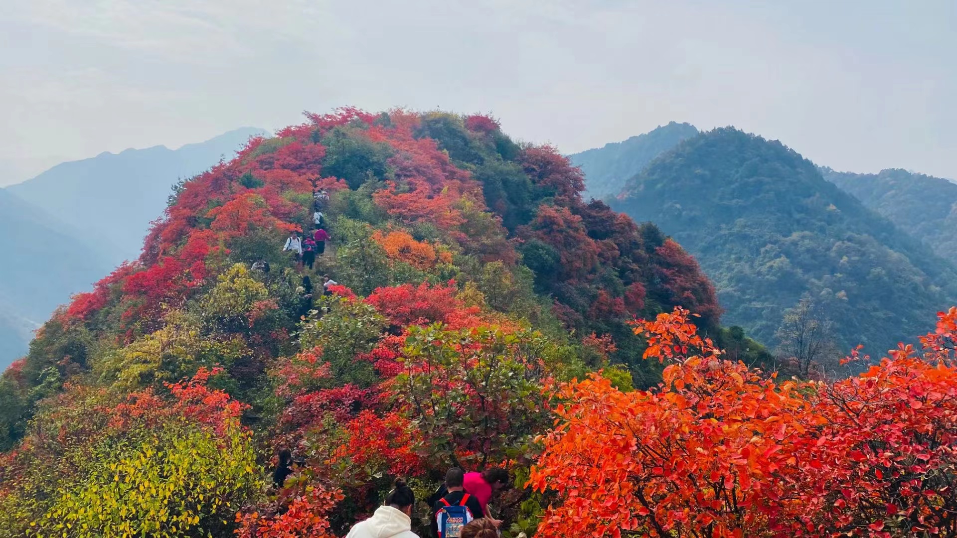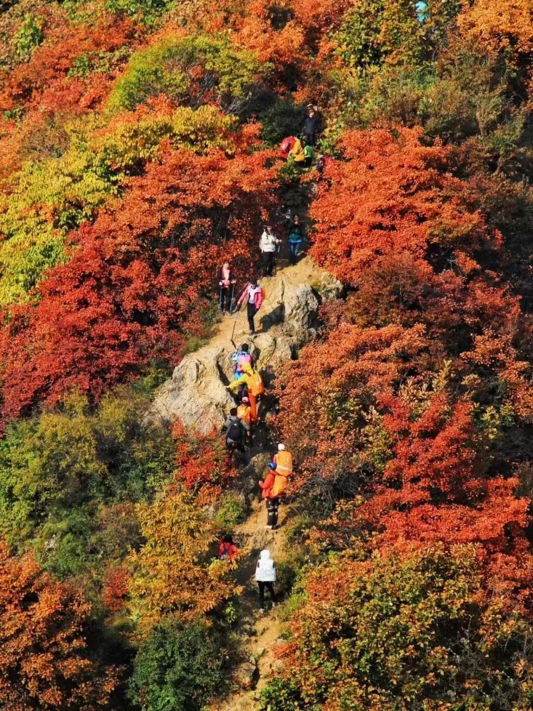 14:30 午餐结束经穿越山梁,这里的红叶最为漂亮, 回头皆景