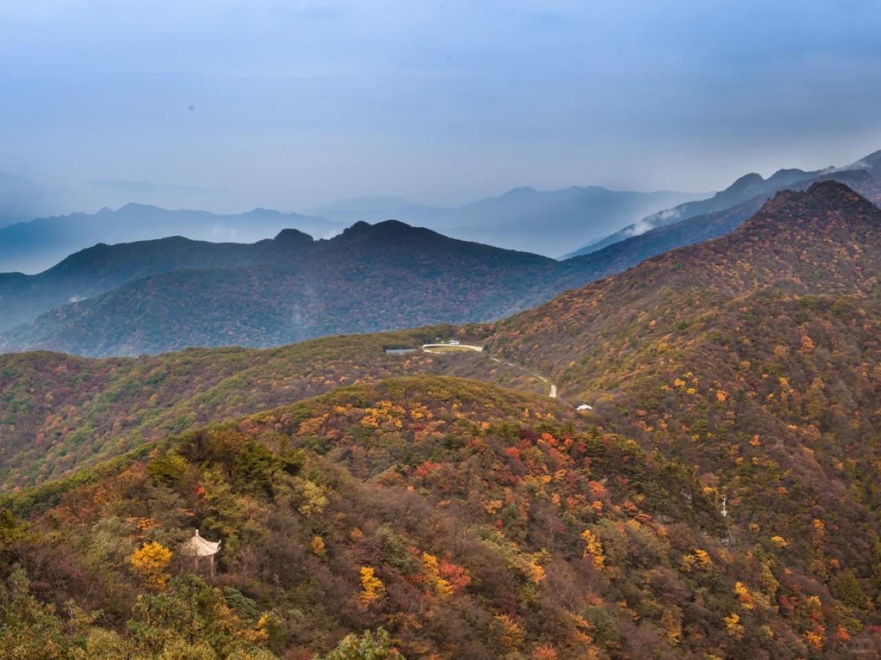 12:30左右登顶终南山、顶上景观有南草北木、长江黄河分水岭、中国南北分界线