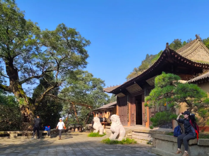09:00 到达登山口热身合影,之后开始古寺寻秋,打卡律宗祖庭