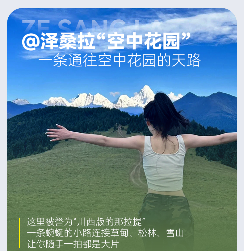 2.泽桑拉空中花园如因雨季无法前往或地方政策影响则改为木都垭口观景台。