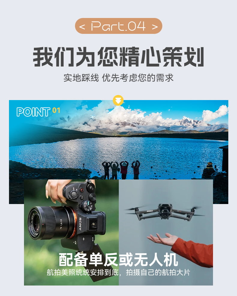8.我们所设计的产品多为户外徒步、摄影、登山探险路线,操作流程比较繁琐也具备一些突发的风险性,天气、自然灾害、地方政策等客观因素常常会影响原定计划的实施。应对突发情况时,如大雪封山道路受阻等情况为避免不确定风险领队有权给出行程变更方案,与全体队员协商并投票,表决通过,不能因个人冒险行为影响领队的工作和判断。