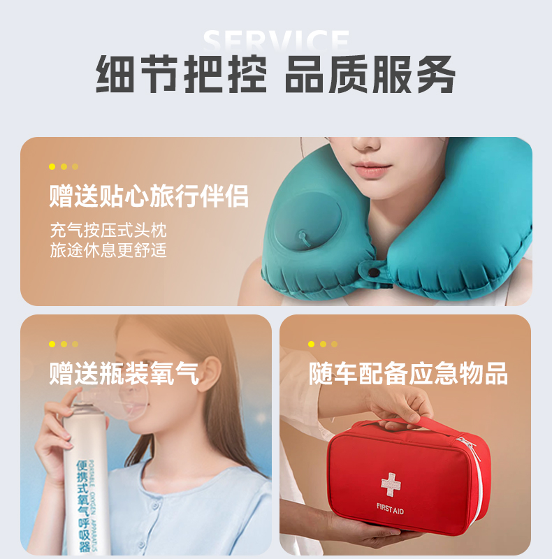 特别声明:工作人员因没有医疗资质,随车只提供瓶装氧气,提供常规感冒药品等,无其他特殊药品,请提前备足适合自己的药品。