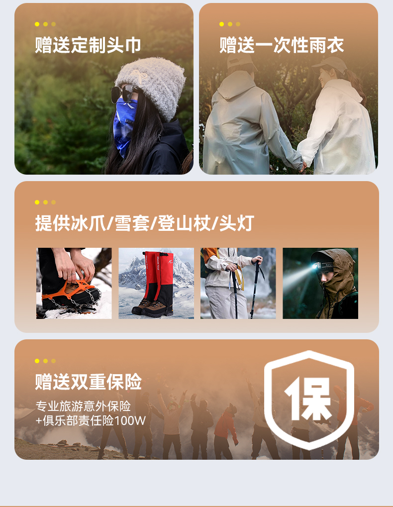 1.提供登山杖雪套冰爪头灯