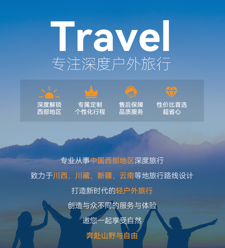3.西部地区旅行有很多与你在繁华都市不一样的体验,在这些原始的地带,交通、医疗、餐食、硬件都是无法和城市环境相比拟,有不一样的风俗习惯和饮食差异所有请做好自己的心理建设,当然我们选择这样一段旅途,也能给你不一样的收获和体验。