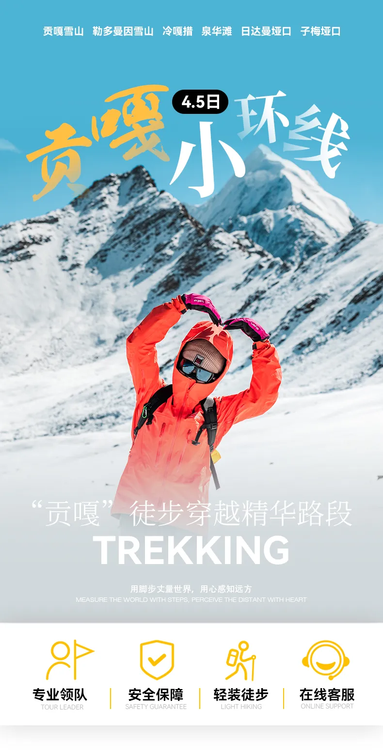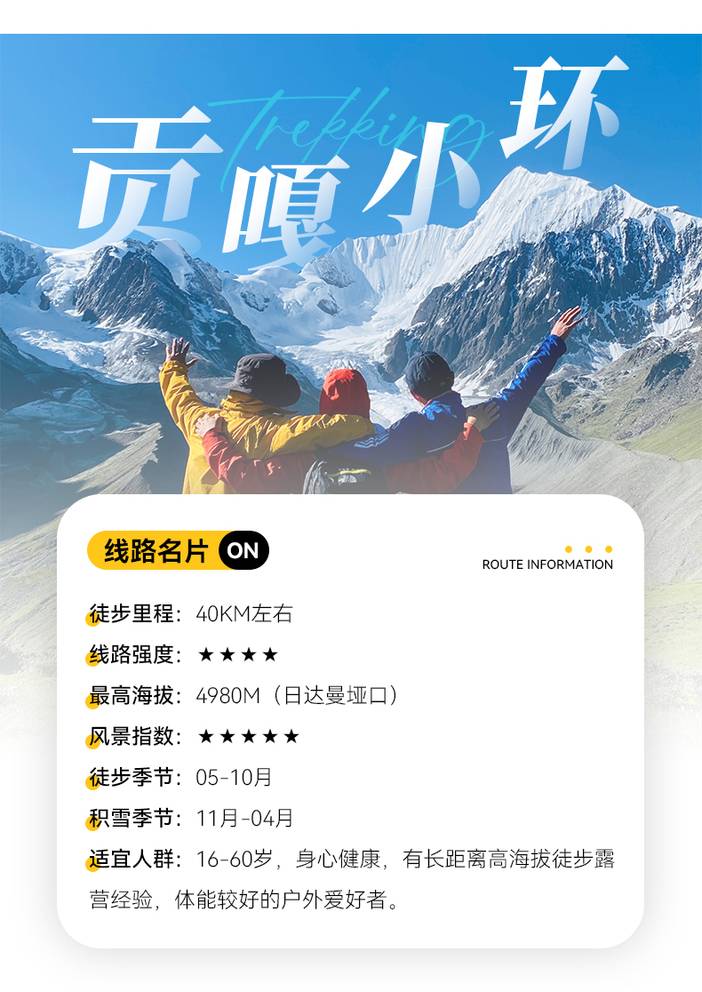 2.今天全程大约14公里左右,海拔跨度很大(最高4980米,最低3700米);如果发生高反或身体不适,请及时联系领队。