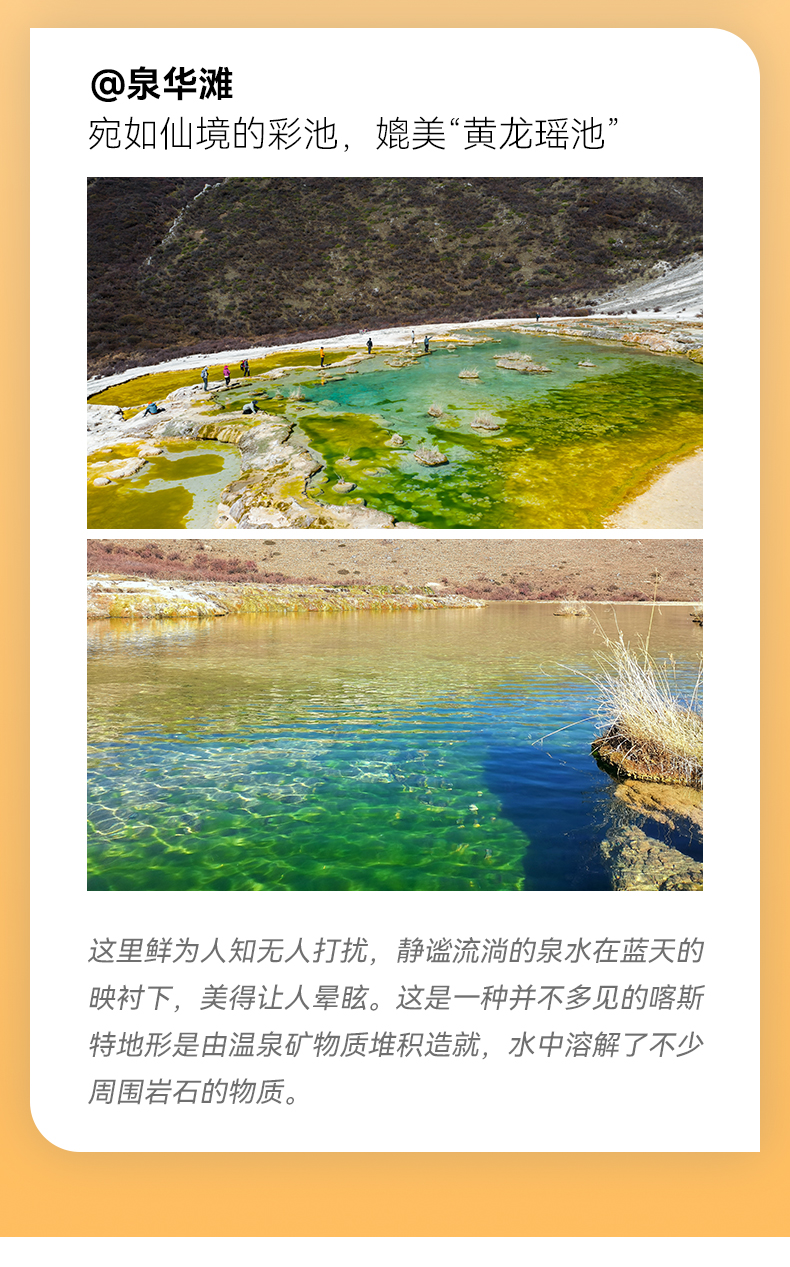1.泉华滩景观在玉龙西村村委会对面半山位置,往返徒步约3km,加上拍照打卡往返约1.5小时。