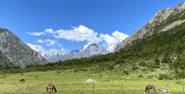 D3上日乌且营地-(徒步约6公里)-日达曼垭口-(徒步约8公里)-日达曼牧场-(乘车)-子梅垭口-(乘车1小时)玉龙西村
