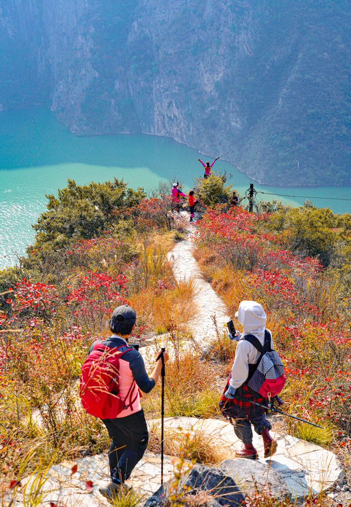 08:30开始三峡之巅徒步之旅。徒步路线全长约5公里,海拔上升约300米,沿途经过观景步道、山林秘境,终点为三峡之巅观景台。站在海拔1388米的三峡之巅,可将瞿塘峡全景尽收眼底,感受“高峡出平湖”的震撼。徒步过程中请根据自身情况调整节奏,景区内设有休息点和指示牌。