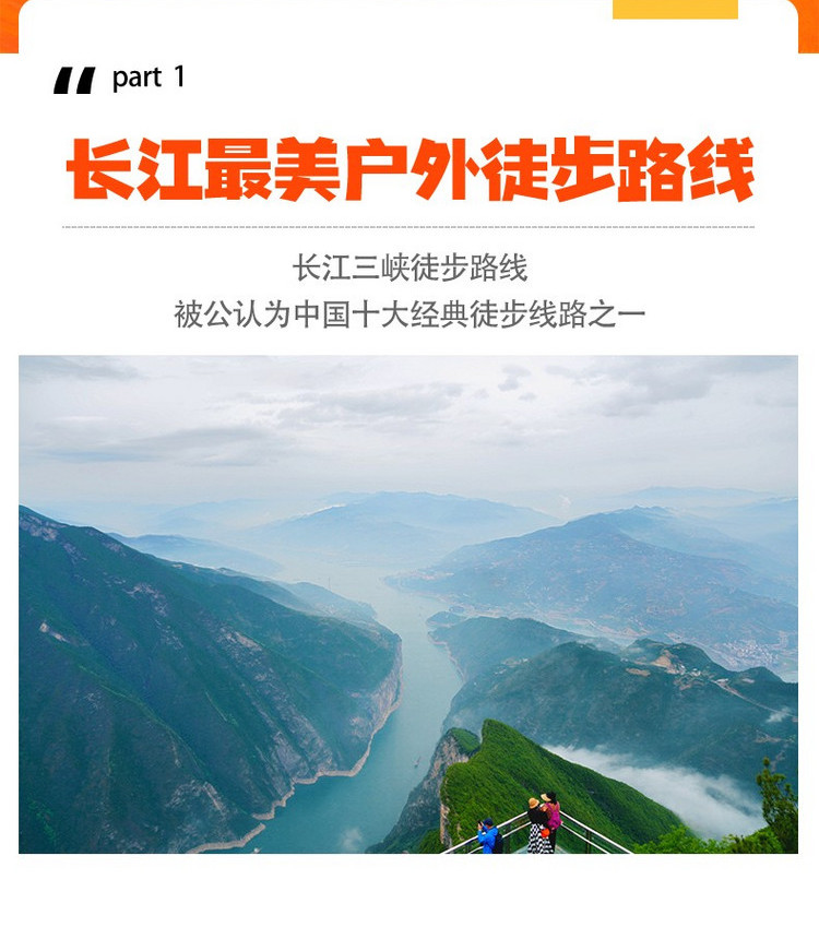 ②衣物穿着:三峡地区气候湿润,早晚温差较大,建议携带薄外套;徒步行程较多,需穿着舒适的运动鞋或徒步鞋;做好保暖,注意防晒,携带遮阳帽、太阳镜、防晒霜。