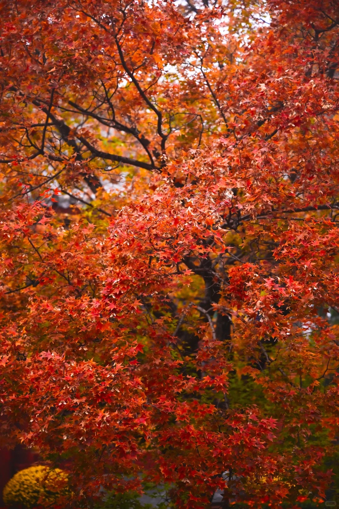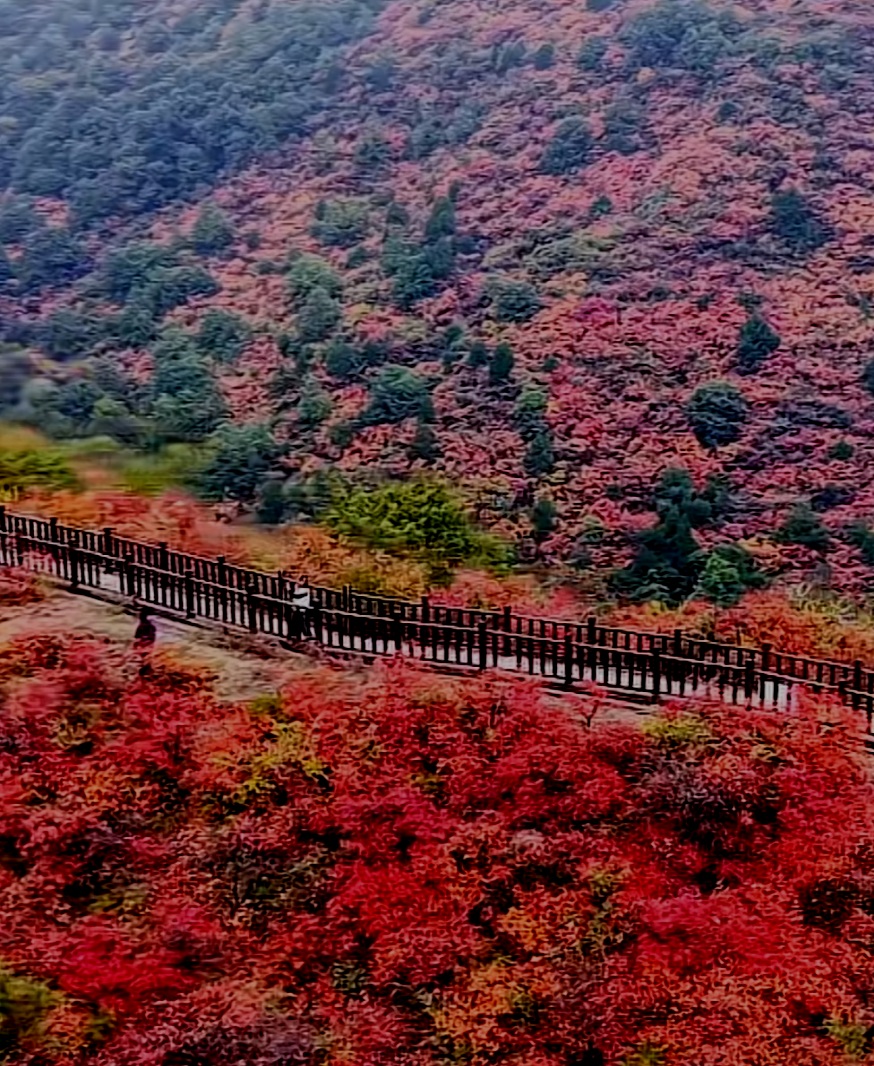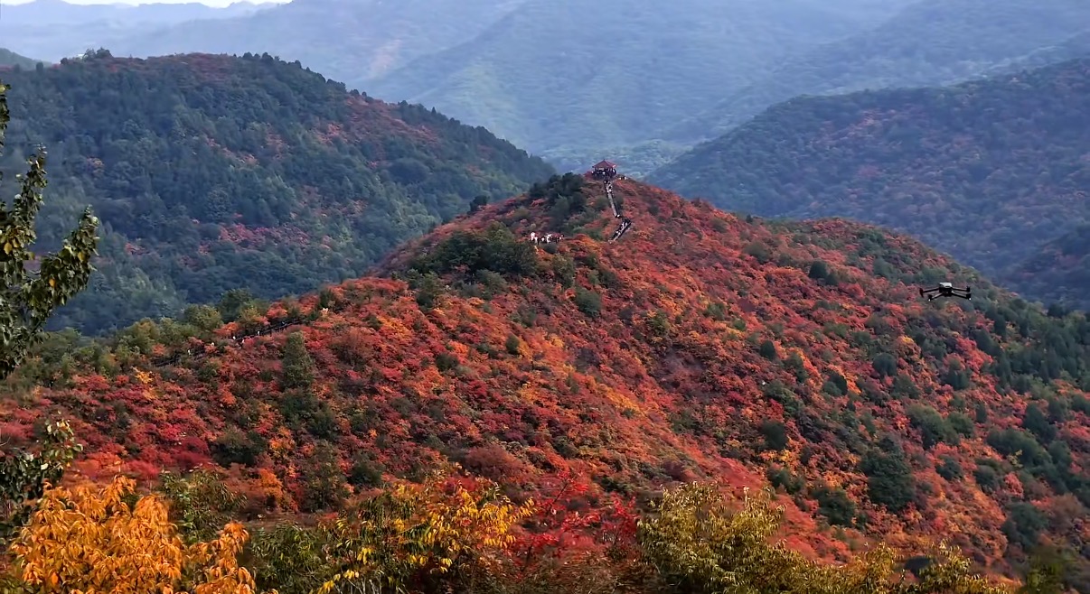 换上热烈的橙红、金黄,从山脚到山顶,层层叠叠的红叶像被大自然打翻了调色盘